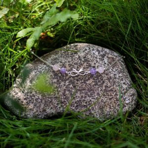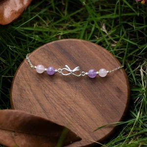 Cầu tình duyên: vòng tay bạc mix thạch anh hồng.